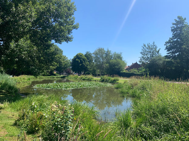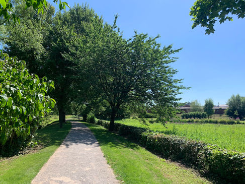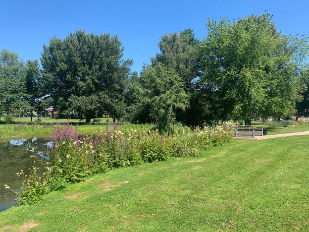 Des terrassements réalisés aux abords des voies d’eaux favorisent l’apparition de roselières. Un verger composé d’anciennes variétés régionales de fruitiers est créé. Des plantations d’arbustes créeront des écrans de verdure et maintiendront une intimité pour les riverains. Du mobilier de détente sera installé afin que le public puisse jouir pleinement des bénéfices de la coulée verte.